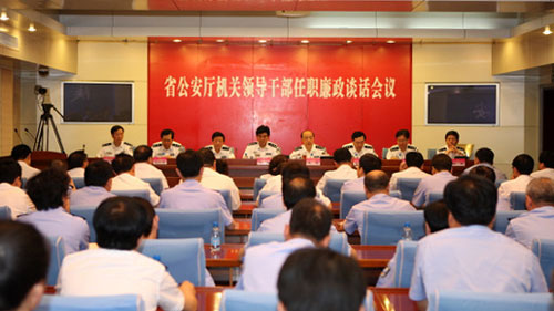 2011年5月17日上午,省公安厅召开厅机关新任职领导干部任职廉政谈话会议。省政府党组成员、省公安厅党委书记、厅长王锐同志和在家厅党委成员出席会议,新提拔任用的27名厅处级领导干部和交流转任的48名处级领导干部参加了会议。会议由省公安厅党委委员、纪委书记、督察长田桦同志主持。