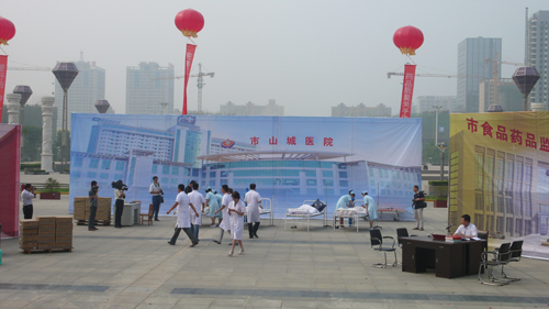 7月19日上午,全省药品安全突发事件应急演练观摩活动在宝鸡市君悦酒店广场举行,陕西省食品安全委员会办公室主任、省食品药品监督管理局局长李荣杰出席会议并宣布演练开始,省卫生厅、监察厅、公安厅、工信厅、工商局、中医药管理局、政府应急办等省直有关单位的相关领导出席会议观摩了演练活动;全省十一个市区的食品药品监管局的领导及相关处室的领导出席了会议。宝鸡市委书记唐俊昌、市长戴征社出席会并致辞。