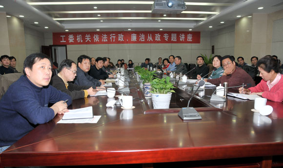 2009年11月30日,省直机关工委举办了一次依法行政、廉洁从政专题讲座,邀请省纪委党风室副主任马银录同志做专题辅导。举办此次讲座旨在深入学习贯彻今年党中央国务院四个反腐倡廉重要规范性文件及党的十七届四中全会精神,加强和改进新形势下党的建设,推进反腐倡廉建设,提升工委党员干部依法行政、廉洁从政的能力。