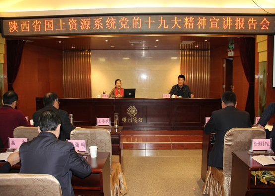 11月21日,省国土资源厅党组成员、纪检组长梁彤靖深入铜川市耀州区,向全市国土资源系统党员干部职工宣讲党的十九大精神。从党十九大的重要意义入手,从报告的主题、重大成就和变革、中国特色社会主义新时代、习近平新时代中国特色社会主义思想、新时期的奋斗目标、全面从严治党等六个方面深入解读、剖析了党的十九大在政治上、理论上、实践上取得的一系列重大成果和历史贡献,并结合学习情况,分享交流了自己的学习体会。