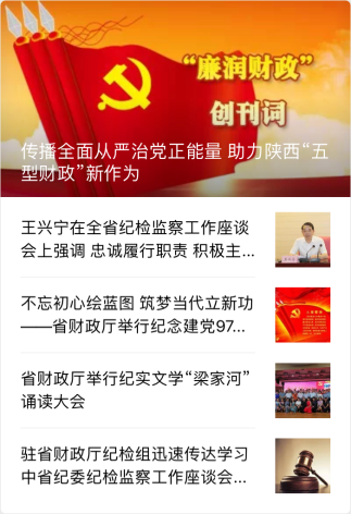 “廉润财政”微信公众号秉持“严肃、准确、及时、权威”方针,围绕“出精品、树品牌、创一流”目标,聚焦全面从严治党政策发布、廉政动态、廉政文化等重要内容,着力打造全省财政系统全面从严治党权威发布的宣传阵地、工作经验的交流平台、廉政教育的学习园地。