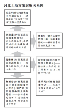 记者调查发现,在这个腐败链条中,省、市、县三级国土部门7名“大员”,外加一县委书记,各自利用手中权力,环环相扣,织成了一张腐败的网。