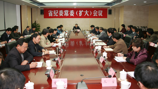 4月11日下午,省纪委召开常委(扩大)会议,传达全国纪检监察机关查办案件工作座谈会精神。省委常委、省纪委书记郭永平强调,要认真贯彻落实全国办案工作会议精神,继续加大查办案件工作力度,确保查办案件工作健康稳妥地进行,为维护改革发展稳定大局提供坚强的纪律保证。省纪委、省监察厅领导龚汉江、纪相忠、张毅民、魏燕、贠军、刘长楼、郭润芝、高霄、马奔出席会议。