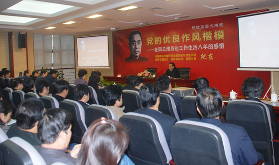 11月24日下午,省纪委、省监察厅举办《纪检大讲堂》讲座。武警指挥学院原副院长、中国中共文献研究会周恩来思想生平研究分会副会长、周恩来总理秘书纪东少将作报告。省纪委、省监察厅领导、机关干部职工和各派驻机构全体干部、省委巡视机构全体干部共200余人参加了报告会。