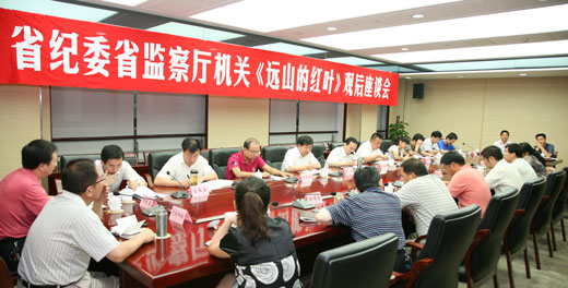 6月24日至7月4日,20集电视连续剧《远山的红叶》在央视综合频道黄金时段进行了播放,引起了社会各界的强烈震撼和热议。为了把学习宣传王瑛同志先进事迹的活动进一步引向深入,7月9号,省纪委省监察厅举办《远山的红叶》观后座谈会,委厅机关各党支部代表,通过座谈会的形式,就学习王瑛先进事迹,进一步加强机关自身建设,强化党员干部理想信念作了交流。