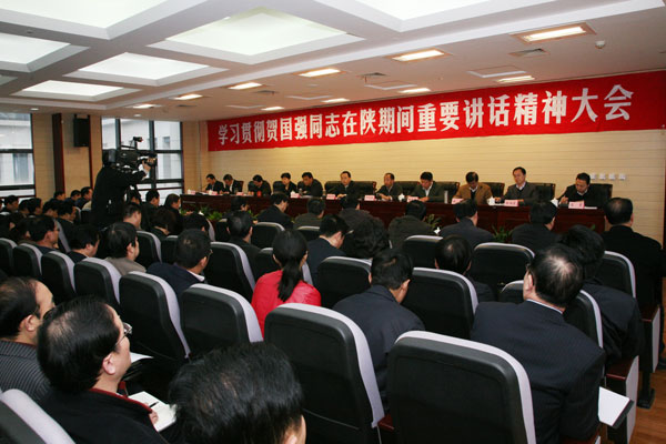 郭永平说,贺国强同志在陕期间的重要讲话,高屋建瓴、思路清晰、内涵丰富,思想性、针对性很强,对加快陕西发展具有重要指导意义。我们一定要认真学习、深刻领会,坚决贯彻落实。要按照贺国强同志讲话要求,把学习贯彻党的十七届五中全会精神作为当前首要政治任务,在全省掀起学习贯彻五中全会精神的热潮。要迅速把贺国强同志的重要讲话精神传达到基层、传达到每一位纪检监察干部。各级纪检监察领导班子和领导干部要带头学习、带头思考、带头落实。要准确把握深刻内涵,领会精神实质。要联系实际,做到学以致用,指导实践,推动工作。