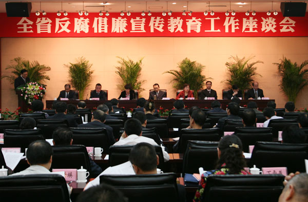 4月26日,省纪委在西安召开全省反腐倡廉宣传教育工作座谈会,回顾总结我省近年来反腐倡廉宣传教育工作,安排部署今年任务。省委常委、省纪委书记郭永平出席会议并强调,要创新理念,创新思路,创新载体,创新制度,进一步增强反腐倡廉宣传教育工作活力。参加会议的还有省纪委副书记魏燕,省委宣传部副部长、省文联党组书记刘斌,省委组织部副部长冯力军,省纪委常委高山,省文化厅副厅长李军民,省广电局副局长李选政,省新闻出版局副局长曹先觉。