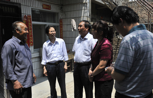 6月6日,省纪委常委刘长楼在榆林市委常委、市纪委书记周树红,榆阳区委常委、区纪委书记霍风莲的陪同下,来到榆阳区驻峰路办事处兴中路社区开展“三问三解”活动,看望了联系帮扶对象贫困职工王仲山夫妇。