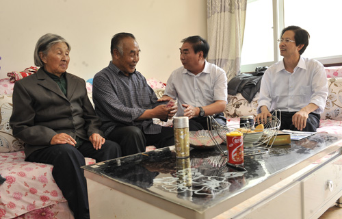 在王仲山的家里,刘长楼亲切地拉着他的手,仔细询问家庭收入、生活及医疗保健等情况,了解他们在生活等各方面遇到的具体困难,并送上自己的慰问金。他鼓励王仲山夫妇要乐观坚强,保重身体,好好生活,尤其是乔兰英要树立起战胜困难的信心,尽快养好身体,日子一定会越来越好。他还介绍了我省第十二次党代会的一些主要精神,尤其是我省确定的“经济强、科教强、文化强、百姓富、生态美”的“三强一福一美”奋斗目标,勉励王仲山夫妇一定要增强信心,乐观面对未来,要相信党和政府不会忘记贫困群众。临行前又深情地说,作为联系对象,今天我来正式与你结对子、作朋友,有什么困难,可以直接给我们打电话,我们共同研究解决。