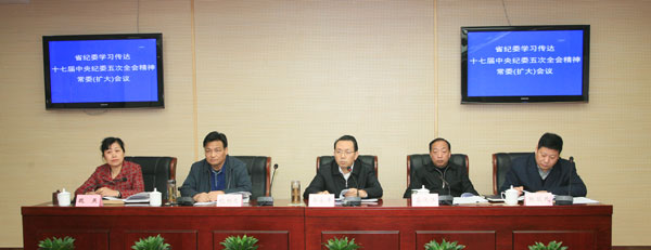 会议全文学习了胡锦涛总书记在十七届中央纪委五次全会上的重要讲话,学习传达了贺国强同志代表中央纪委常委会所作的工作报告。