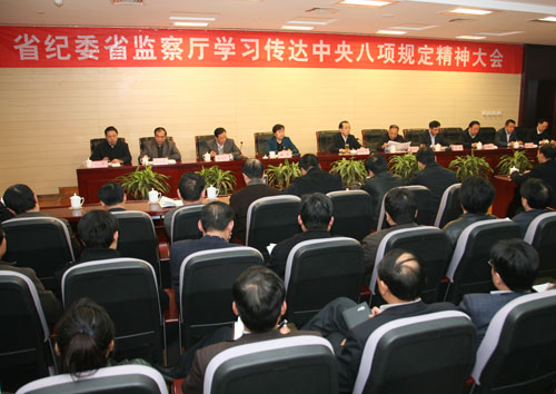 12月13日下午,省纪委省监察厅机关召开处级以上干部大会,学习传达中央八项规定精神。省委常委、省纪委书记郭永平主持会议并讲话。委厅领导龚汉江、魏燕、马奔、郭润芝、王晓斌、刘长楼、高山、高霄、沈涛出席。