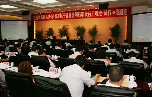 目前,我省共有农村乡镇党委1597个,村党支部27468个,农民党员892219人,约占全省党员总数的 42.9%。加强农村基层干部教育培训意义重大,任务艰巨。根据中央纪委“杭州会议”关于“年底前对农村基层干部进行一次专门培训”的要求,省纪委决定举办全省《若干规定》培训班,为下一步各市县组织开展培训工作培养师资力量。培训班上省纪委党风室主任魏建国、旬邑县委书记刘新余、横山县委书记王效力及旬阳县委书记邹俊杰分别从规范农村基层干部履职行为,《若干规定》出台的意义和启示,农村基层干部廉洁履职存在的问题及对策,落实《若干规定》需要解决的问题等不同角度,不同层面,结合工作实际为与会同志进行了专题辅导。