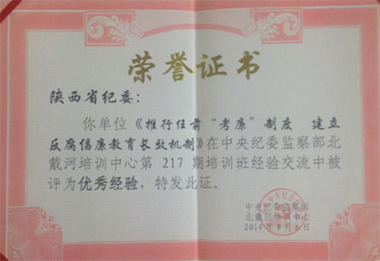 2014年7月28日至8月6日,陕西省纪检监察系统21人参加了中纪委北戴河培训中心第217期全国宣教业务培训班。培训期间,我省学员认真聆听授课,积极参与讨论,严守培训纪律,圆满完成了培训任务。我省《推行任前“考廉”制度,建立反腐倡廉教育长效机制》经验汇报在交流会上获得了学员的广泛关注,被培训中心评为“优秀经验”,并颁发荣誉证书,省纪委宣教室桑桑等四名学员被评为优秀学员。