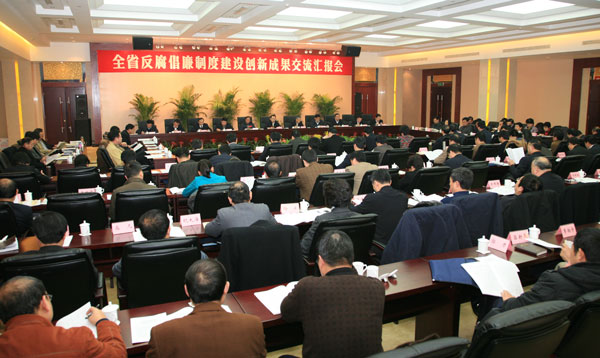 12月21日,省纪委召开全省反腐倡廉制度建设创新成果交流汇报会,听取全省各市(区)纪委、监察局就贯彻落实“五项制度”,推进反腐倡廉制度创新的情况汇报,回顾总结全省反腐倡廉制度建设创新年活动情况,交流制度创新成果,总结工作经验,研究明年推进反腐倡廉制度创新、加快推进惩治和预防腐败体系建设的思路和对策。省委常委、省纪委书记郭永平出席会议并作了重要讲话,省委副秘书长朱仓民,省纪委、省监察厅领导龚汉江、纪相忠、张毅民、王晓斌、刘长楼、郭润芝、高山、高霄、马奔出席会议。省委常委、省纪委书记郭永平在会上强调,要继续巩固和深化实施效果,不断扩大“五项制度”的覆盖面和影响力,推动反腐倡廉制度建设向纵深发展。