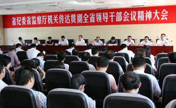 7月24日下午,省纪委、监察厅召开机关全体干部大会,传达贯彻全省领导干部会议精神。省委常委、省纪委书记郭永平强调,各级纪检监察机关要围绕中心,服务大局,充分发挥纪检监察职能作用,为推动全省经济社会平稳较快发展提供坚强保证。