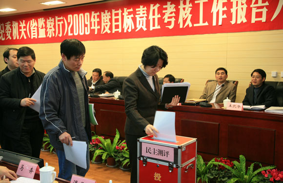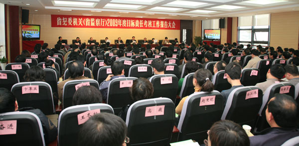 1月27日下午,陕西省目标责任第一考核组到省纪委机关(省监察厅)开展考核工作,并召开2009年度目标责任考核工作报告大会。省委常委、省纪委书记郭永平主持大会并讲话,强调各级纪检监察机关要以目标责任考核为动力,深入推进全省反腐倡廉建设。