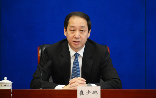 图为中央纪委常委、秘书长崔少鹏主持新闻发布会