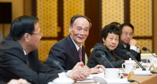 3月4日,中共中央政治局常委、中央纪委书记王岐山看望出席全国政协十二届二次会议的民盟、民进界委员并参加讨论。新华社记者 谢环驰 摄