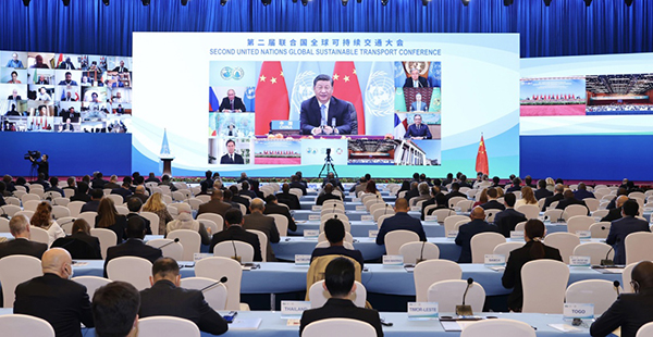 国家主席习近平14日晚以视频方式出席第二届联合国全球可持续交通大会开幕式并发表题为《与世界相交 与时代相通 在可持续发展道路上阔步前行》的主旨讲话。