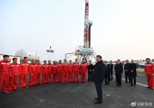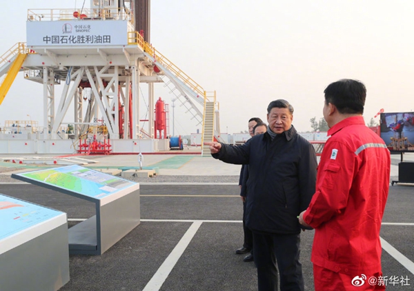 21日,习近平总书记继续在山东省东营市考察调研。他先后来到黄河三角洲农业高新技术产业示范区、垦利区董集镇杨庙社区、胜利油田勘探开发研究院和钻井平台,了解黄河三角洲盐碱地综合利用和现代农业发展、黄河滩区和原蓄滞洪区居民迁建、胜利油田创新发展等情况。