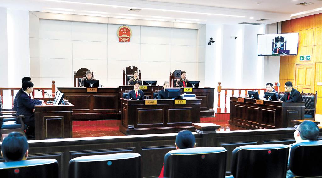 11月15日,湖北省武汉市中级人民法院公开宣判“百名红通人员”徐进贪污、受贿违法所得没收申请一案。图为庭审现场。 李金星 摄