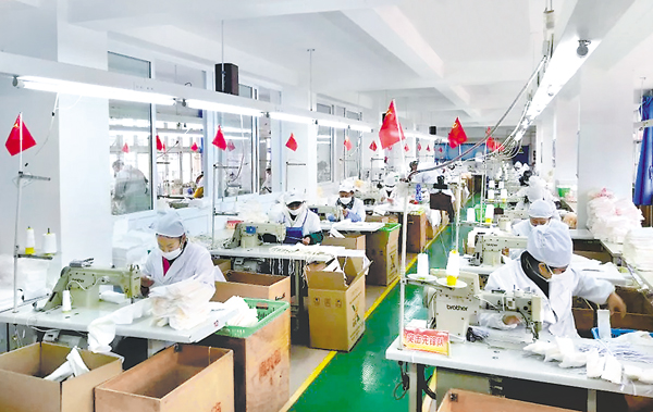疫情期间,云锡劳动防护用品公司组织党员和职工生产口罩,为云南省一线抗疫提供了重要防疫物资保障。 (云锡集团供图)
