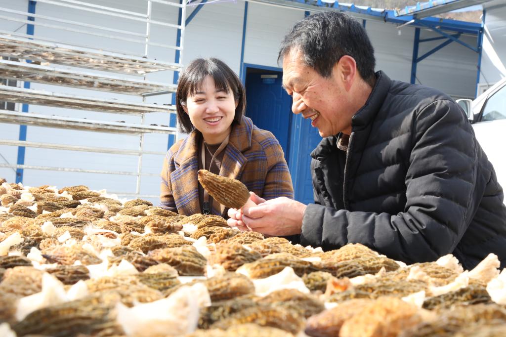 正值羊肚菌采收季节,在陕西省石泉县,纪检监察干部深入农业合作社,深入一线,靠前监督检查集体经济助农增收情况。(陕西省石泉县纪委监委供 吴功娟 摄)