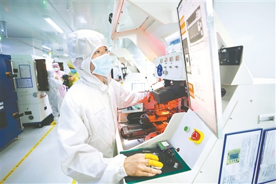 近日,江西各地企业陆续复工复产。南昌高新区的多家高科技企业在做好疫情防控的同时稳步加快生产进度,不少企业开足马力满负荷生产。图为位于南昌高新区的一家通信企业,工作人员在生产线工作。新华社记者 周密 摄