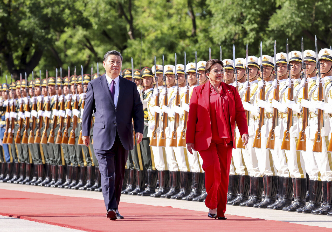 6月12日下午,国家主席习近平在人民大会堂同来华进行国事访问的洪都拉斯总统卡斯特罗举行会谈。