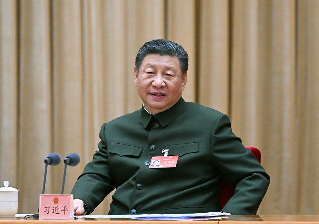 3月7日下午,中共中央总书记、国家主席、中央军委主席习近平出席十四届全国人大二次会议解放军和武警部队代表团全体会议并发表重要讲话。新华社记者 李刚 摄