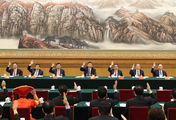 随后,会议在习近平同志主持下进行了各项议程。会议以举手表决方式通过了刘奇葆、孟建柱、赵乐际、栗战书为大会副秘书长。