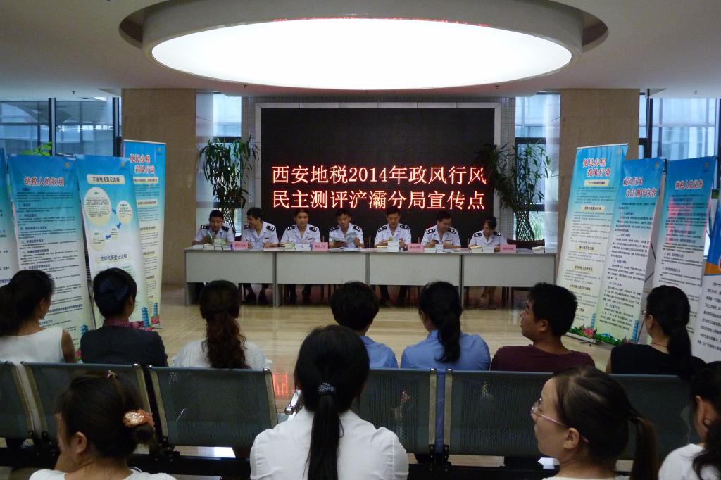 为了搭建税企沟通联系平台,提升税收征管服务水平,促进政风行风不断改进,7月31日上午,西安地税浐灞分局根据市纪委、市地税局的统一安排部署,在浐灞商务中心政务大厅开展了政风行风民主测评集中宣传活动。