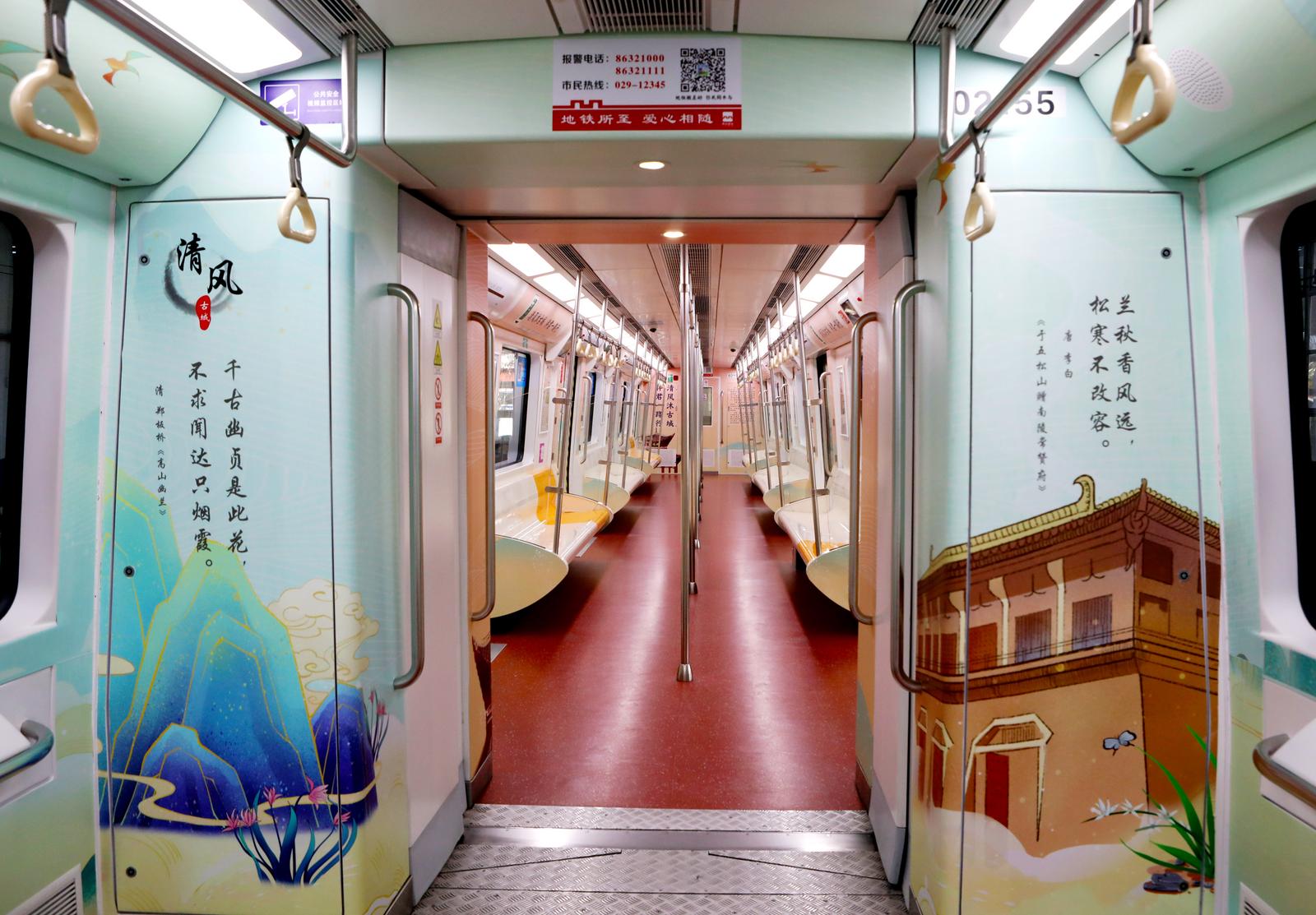 “清风古城号”地铁专列以“清风沐古城,伴君一路行”为主题,在充分挖掘中华传统文化和西安历史文化元素的基础上打造的一个“流动的清廉展馆、红色的知识课堂、公共的宣传阵地、直观的学习平台”。