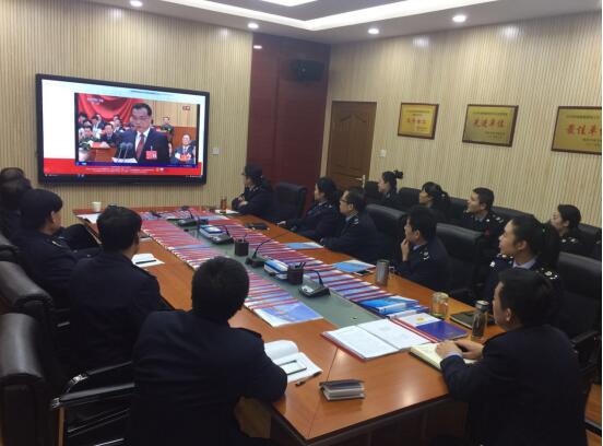 长武县地税局干部集中收看开幕式盛况。(张伟 摄)