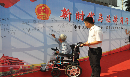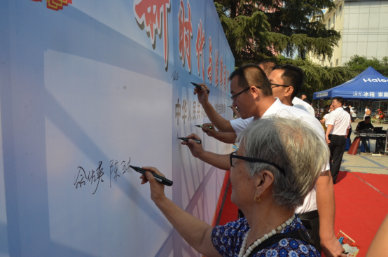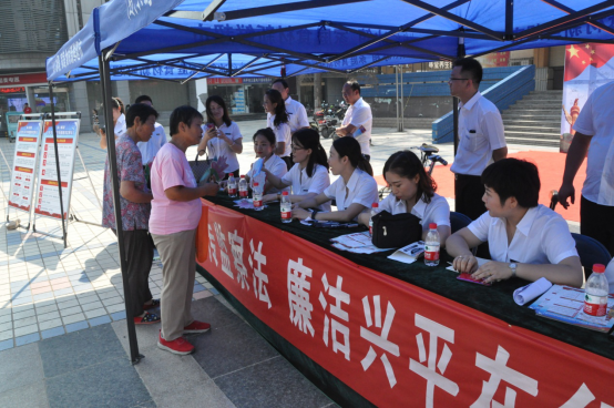 8月30日,兴平市纪委监委联合中共兴平市委宣传部在全市开展“新时代与法律同行”《宪法》《监察法》主题宣传日活动,全市纪检干部、各镇(街道)、市直各单位等420余名党员干部和现场群众共同参与了此次活动。活动现场,围绕国家监察体制改革意义、监察法条文解读等内容设置宣传展板12块,印制发放宣传彩页2000余份,布置“《监察法》就在你身边”漫画展,向群众发放廉洁清风扇1000余个。活动现场来自机关、企业、医院、学校、村(社区)等公职人员集体签名承诺,廉洁履职,严格遵守《宪法》、《监察法》。同时,现场群众积极参与签名活动,助力《宪法》、《监察法》的宣传普及。