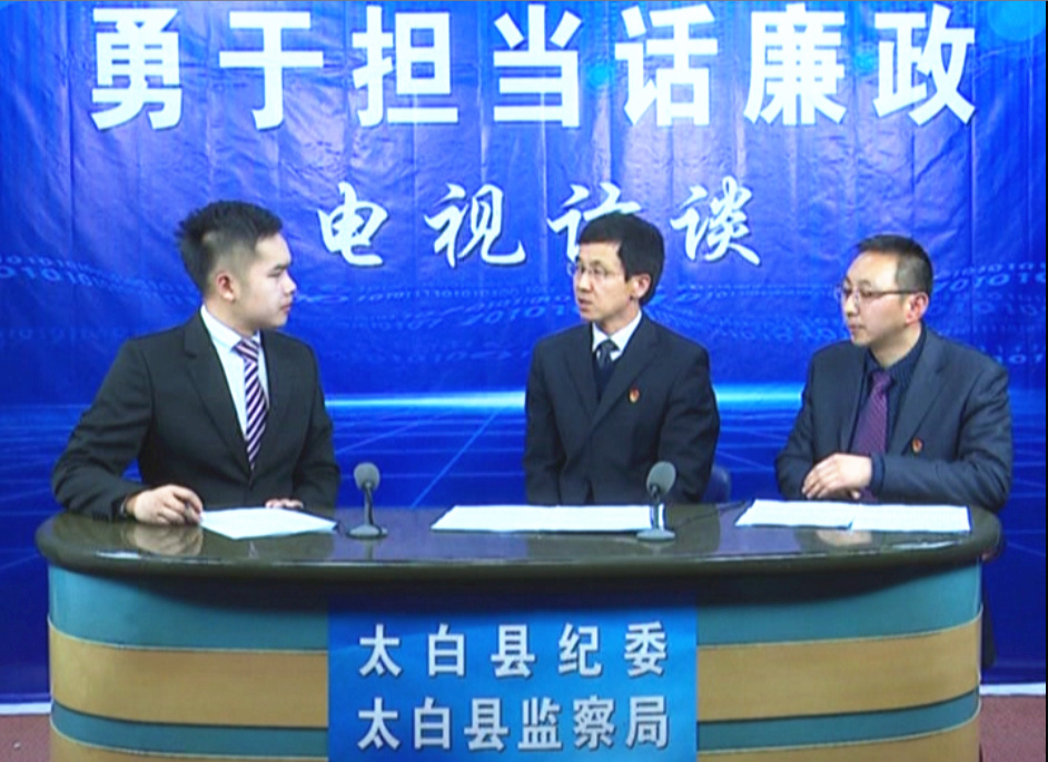 近日,太白县为抓实省市县纪委全会部署的工作任务,开办《勇于担当话廉政》电视访谈节目,采访全县各镇和县级部门党组织负责人、纪检组织负责人落实2017年纪委全会精神的工作思路、举措和进展。
