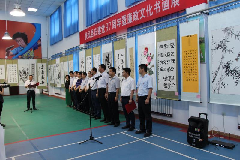 6月27日,宝鸡市扶风县庆祝建党97周年暨廉政文化书画展活动在县青少年宫启动,市纪委监委、县委、县政府、县人大、县政协、县纪委监委、县委组织部领导出席启动仪式。活动以习近平新时代中国特色社会主义思想和党的十九大精神为指导,通过书法、绘画等艺术形式,反映新时代全面从严治党的新思想、新理论,传播廉政文化,唱响反腐倡廉主旋律。