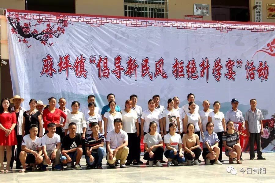 8月9日,旬阳县麻坪镇在镇文化广场隆重举行了“倡导新民风 拒绝升学宴”高考集体“升学礼”庆典仪式。该镇2017年40名准大学生,部分学生家长、亲友、同学、教师、镇村(社区)干部及社区居民共100余人参加了庆典仪式。
