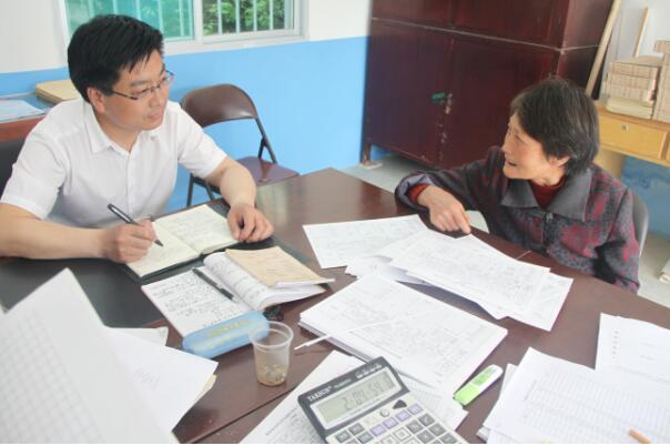 8点30分,付家安和村干部们一起查看精准脱贫档案资料,仔细核查建档立卡贫困户资料的每一个细节。