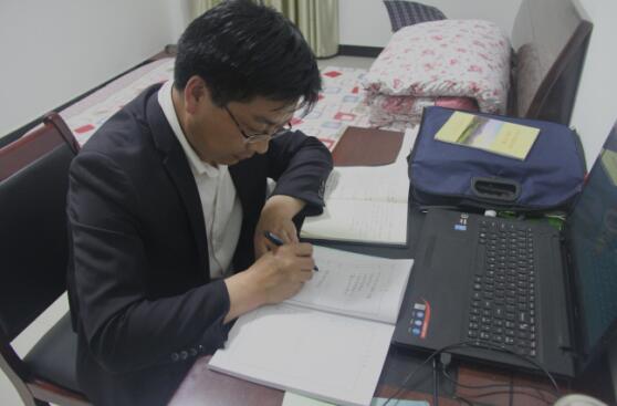晚上8点多,付家安在宿舍认真填写脱贫攻坚日志。