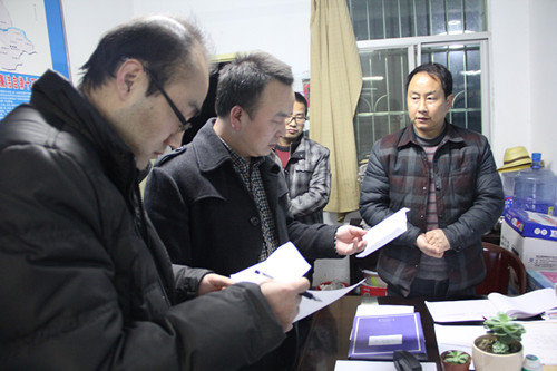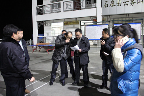 2015年2月3日晚上8时许,石泉县纪检监察干部深入云雾山镇检查值班工作纪律情况。图为检查组在镇院内通过花名册逐一点名核实值班人员。