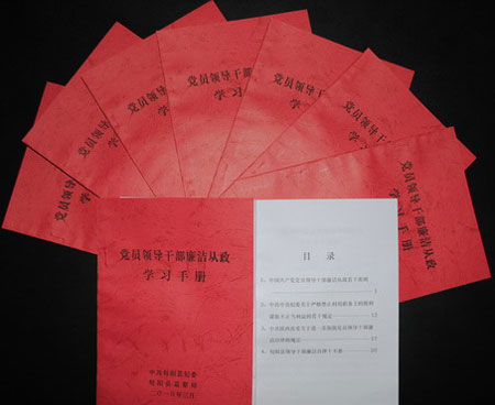 旬阳县认真组织开展《廉政准则》宣传教育月活动,统一安排各级各部门组织一次专题学习、作好一次专题辅导、进行一次学习讨论、办好一批宣传专栏、组织一次知识测试。县纪委、监察局将《廉政准则》等有关党员领导干部廉洁自律方面的纪律规定汇编成《党员领导干部廉洁从政学习手册》,印制1500余册,发至全县科级以上领导和纪检监察干部手中,要求认真学习,严格遵守。