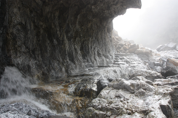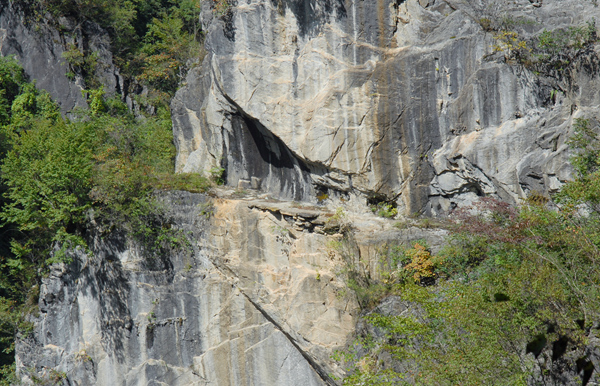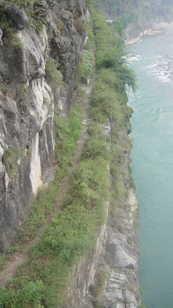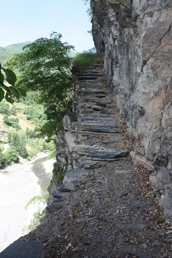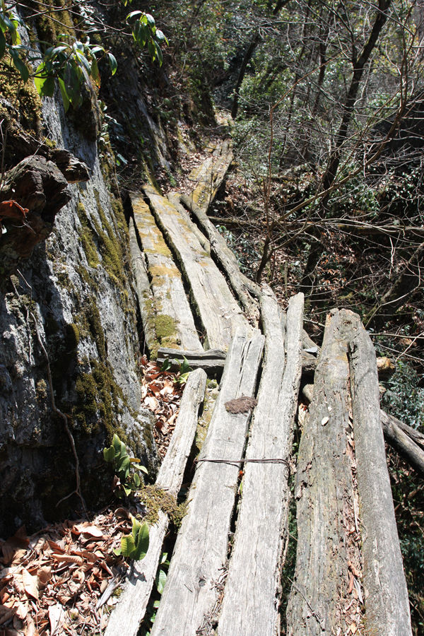 “川盐返川”的盐道栈桥,共有29段木桥连缀在山崖上,最高处距河床垂直高度68米
