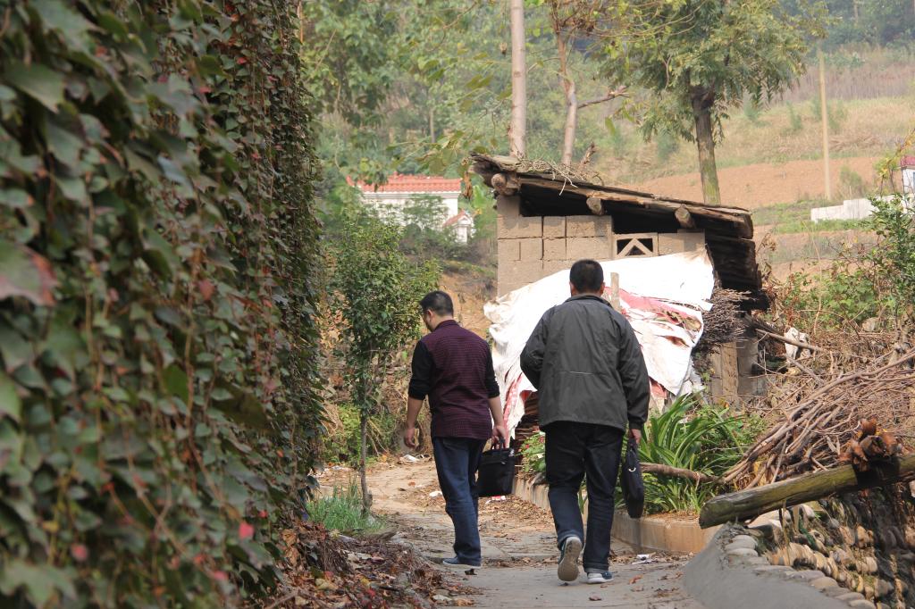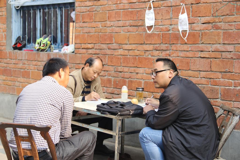图片六:下午1:30,匆匆吃过午饭,案件组又开始走访相关农户,调查取证。