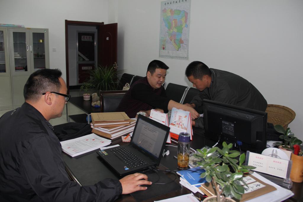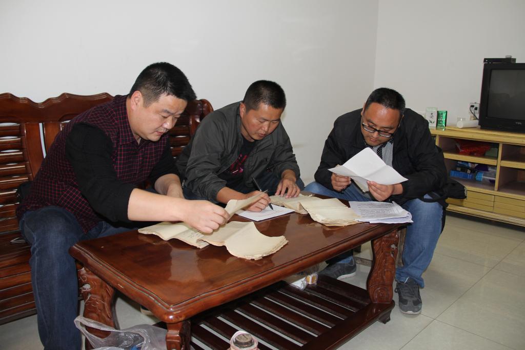 图片七:下午4:10分,办案人员在城关镇鲁家坝社区干部家中查阅相关原始资料。