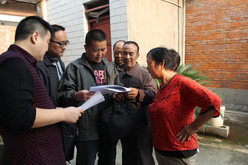 图片三:上午9:10办案人员在城关镇鲁家坝社区一组农户家里了解征地拆迁补偿情况。