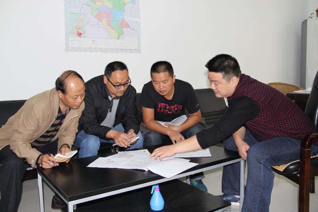图片一:上午8:00,第一纪检监察室室主任周军正和案件组的成员们商讨今天案件查办工作计划和步骤。