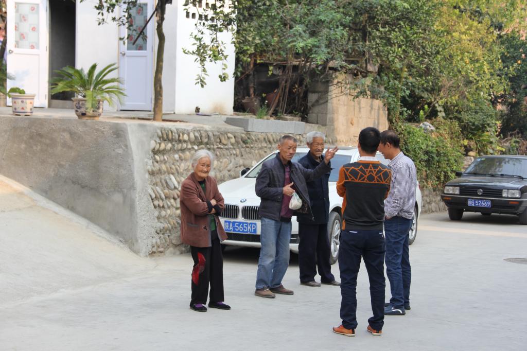 图片四:10:30,陆续有村民听说纪委来人调查了,大家聚在路边等待反映情况。