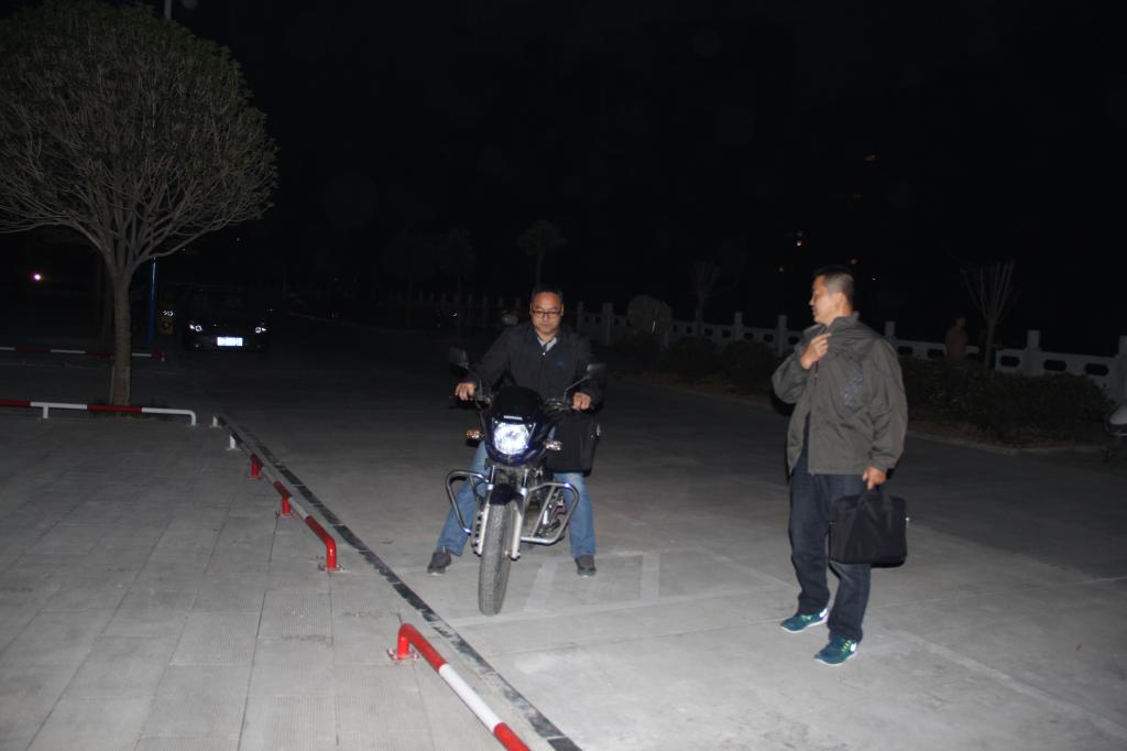 图片九:下午6:50分,办案人员骑摩托回到单位楼下,天已经完全黑了。