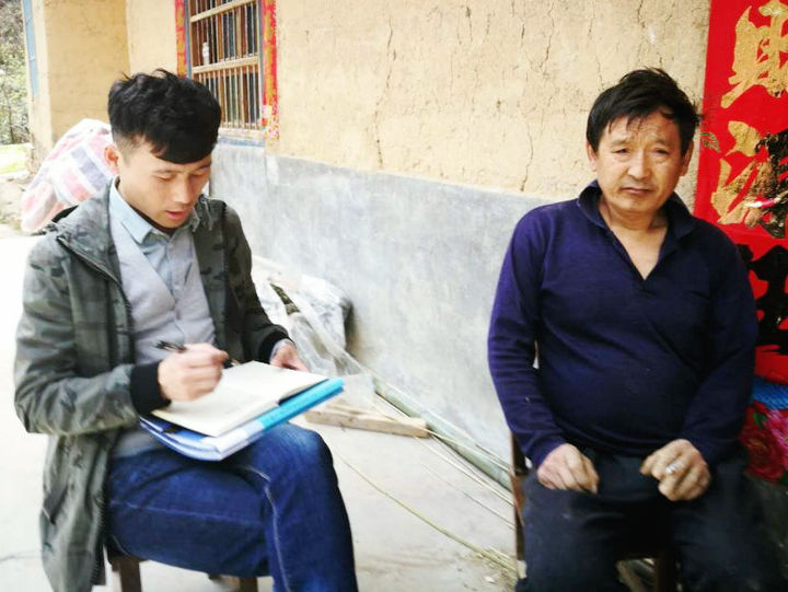 区纪委派驻铁尺村第一书记沙彦鹏逐户统计参加农技培训的贫困户
